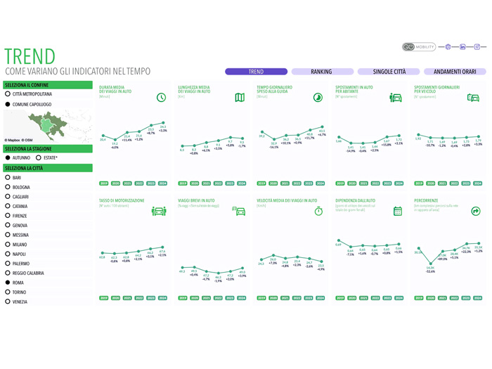 We create and provide public interactive dashboards related to the mobility characteristics of the 14 metropolitan cities in Italy